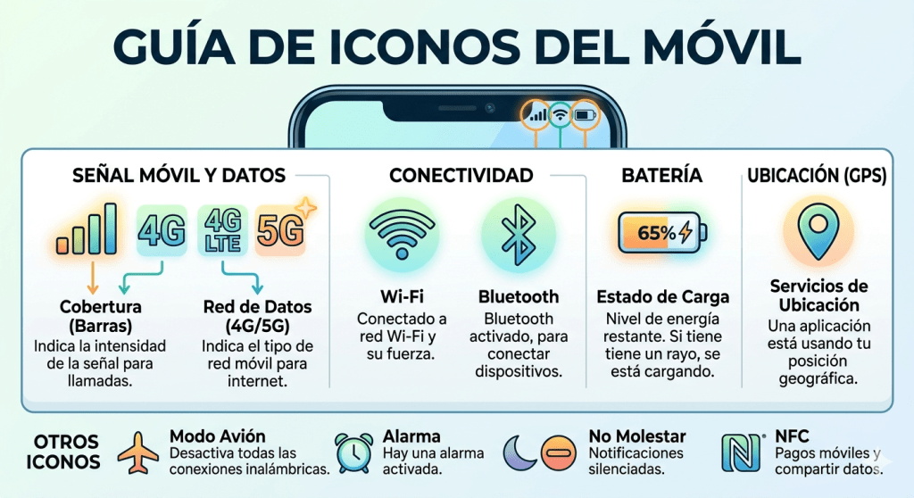 🔔 Qué significan los iconos de la parte superior del móvil (barra de estado)